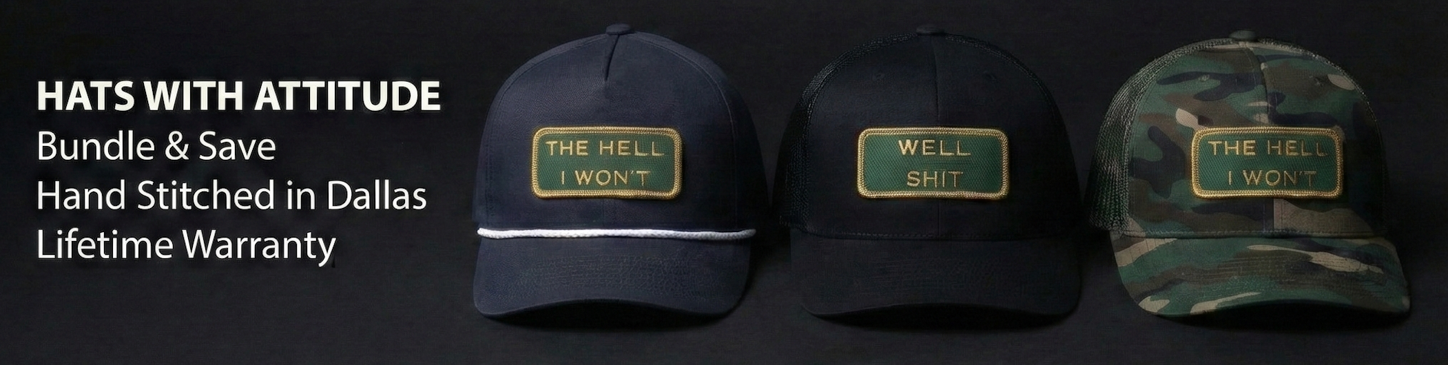 Patches are Hand-Sewn onto our hats in Dallas, TX – Guaranteed for life.